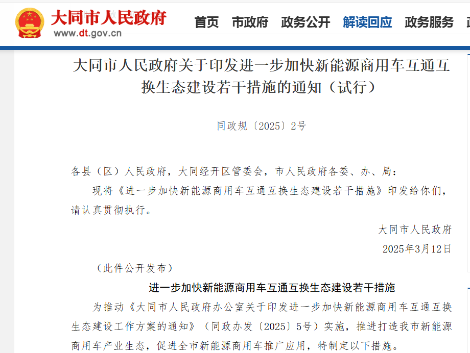 3月19日 (下午)三部門聯(lián)合升級貨車更新政策:交通運輸部、發(fā)改委、財政部將老舊貨車補貼范圍擴展至國三/國四排放車輛,取消燃料類型限制。根據(jù)新規(guī),提前報廢并更換新能源貨車的企業(yè)最高可獲14萬元/車補貼,購置國六車型補貼7萬元。政策特別設(shè)置"綠色通道",對參與氫燃料電池車示范運營的企業(yè)額外給予3萬元運營補貼。支持資金按照總體9:1的原則實行央地共擔(dān)。 3月20日 湖北省確定汽車產(chǎn)業(yè)“雙百萬”目標(biāo) 湖北省分別發(fā)布了《支持全省汽車產(chǎn)業(yè)發(fā)展若干措施(2024—2027年)》和《2025湖北省新能源汽車促消費政策》,將進一步助力2025年“湖北造”新能源汽車產(chǎn)量邁上100萬輛臺階的目標(biāo)。 3月21日 大同構(gòu)建新能源商用車生態(tài)圈 3月29日 央企重組開啟產(chǎn)業(yè)新格局 3月,財政部的扶持政策不僅延長了購置稅減免期限,還加大了對充換電基礎(chǔ)設(shè)施和智能網(wǎng)聯(lián)技術(shù)的投入,為新能源專用車的市場推廣和基礎(chǔ)設(shè)施建設(shè)提供了有力保障。此外,三部門聯(lián)合升級的貨車更新政策,提供了豐厚的補貼,將促進新能源專用車的銷售。湖北省確定汽車產(chǎn)業(yè)“雙百萬”目標(biāo)不僅為當(dāng)?shù)?/span>提供了政策支持和市場需求保障,還促進了產(chǎn)業(yè)鏈的協(xié)同發(fā)展和新能源專用車的普及推廣。這一系列政策將有助于推動新能源專用車產(chǎn)業(yè)的快速發(fā)展和壯大。 |