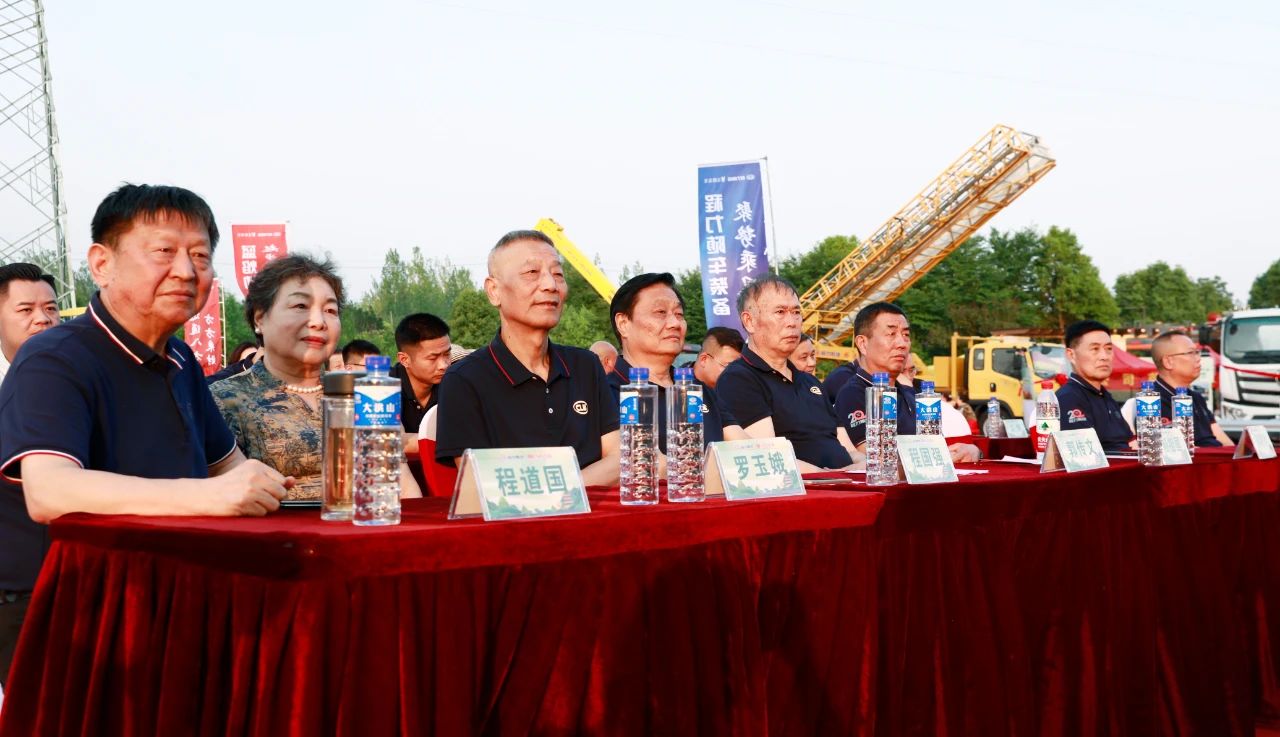 程力汽車集團董事長程阿羅(右一)、江鈴銷售有限公司常務副總經理李闖(右二)、江鈴汽車股份有限公司產品研發總院特種車及工廠技術部部長黃剛(右三)、程力集團黨委書記袁昌才(右四)、總經理朱武(右五)等領導嘉賓前排就坐。