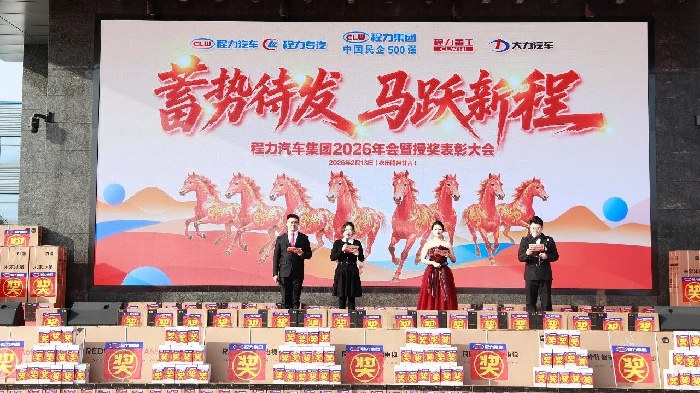 蓄勢待發,馬躍新程----程力汽車集團股份有限公司2026年會暨表彰大會圓滿舉行 “駿馬馳騁勇爭先,蓄勢待發啟新程”,2026年新春將至,程力汽車集團股份有限公司,于2月13日上午,在隨州總部程力大舞臺文化廣場,以蓄勢待發馬躍新程為主題,隆重召開年會暨表彰大會,集團公司2000余名獲獎生產經營單位負責人、先進工作者、示范標兵、金牌跟單員、十大銷售體系團隊獲獎嘉賓、先鋒黨員、優秀黨支部,以及員工代表歡聚一堂,回望耕耘、致敬榜樣、擘畫未來,共赴嶄新征程。