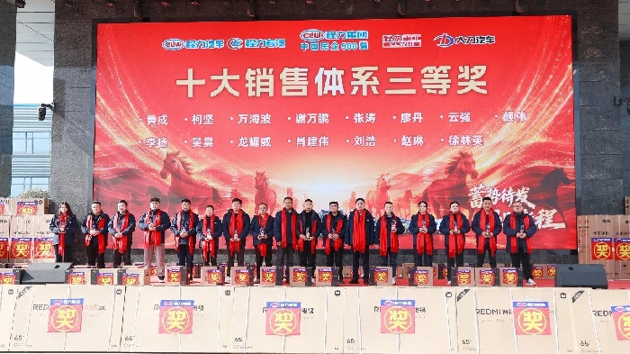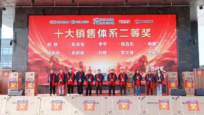 程力的每一步發展,都離不開合作伙伴的鼎力支持與攜手同行。接下來頒發的是“最佳供應商”獎項,此榮譽授予在物料品質、交付效率、合作協同中表現優異的合作伙伴,他們是程力產業鏈上的重要伙伴,更是集團高質量發展的堅實后盾。 銷售與經營齊飛,服務攜創新共贏! 銷售與經營體系表彰重磅登場。從金牌跟單員到十大銷售體系各獎項,從經營激勵獎、進步獎到貢獻獎,階梯式榮譽與豐厚獎品——米家冰箱、空氣炸鍋、REDMI電視、筆記本電腦乃至出國游,充分彰顯集團以績論獎、重獎功臣的鮮明導向,激勵全員勇攀業績高峰。