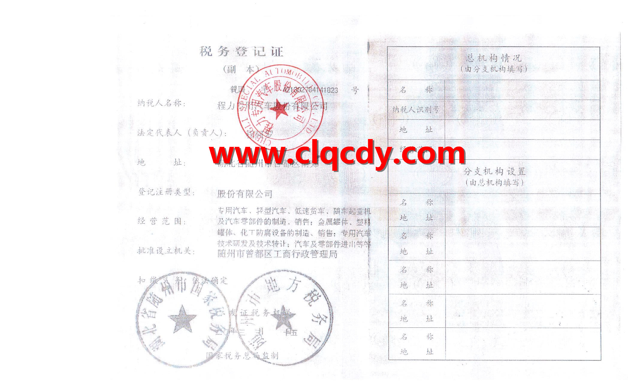 湖北程力營(yíng)業(yè)執(zhí)照、組織機(jī)構(gòu)代碼、稅務(wù)登記證、開戶證明。 |