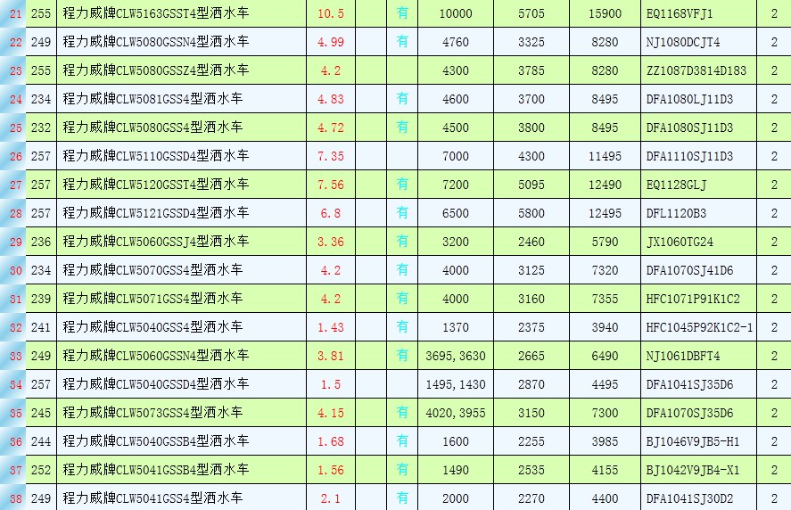 國四灑水車產品型號大全。