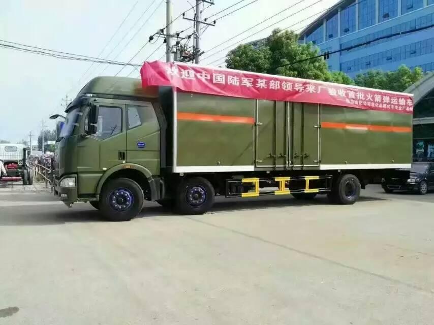 湖北程力危化品廂式車廠順利交付了首批9.6米火箭彈運輸車輛