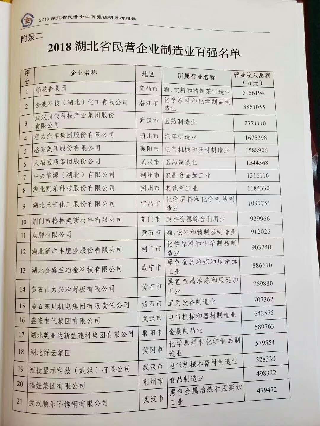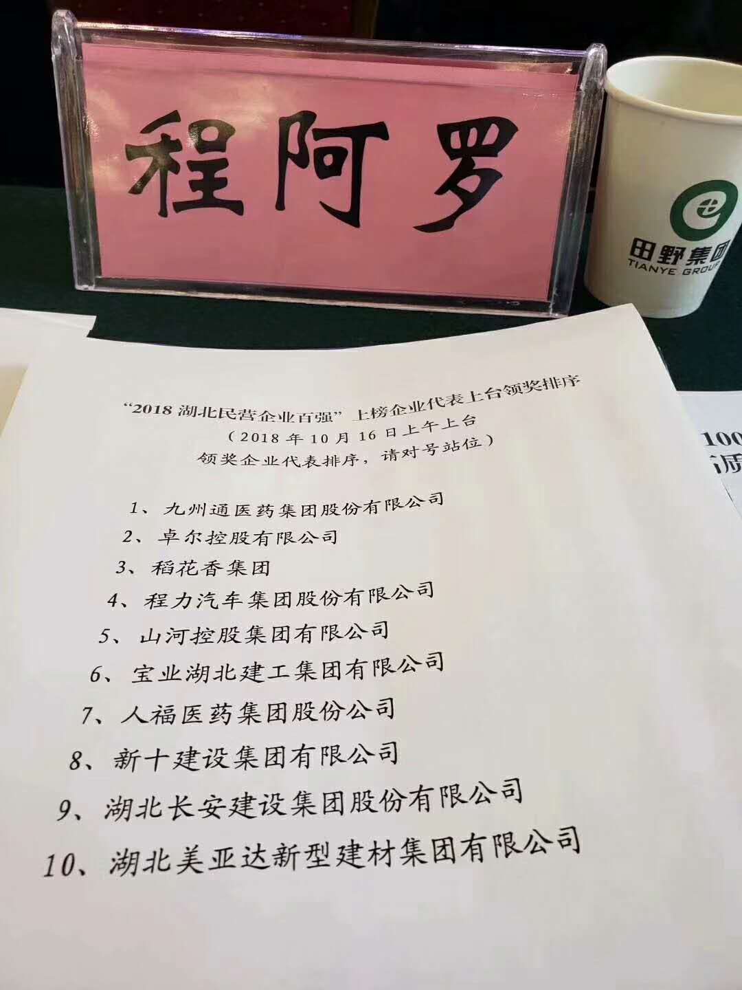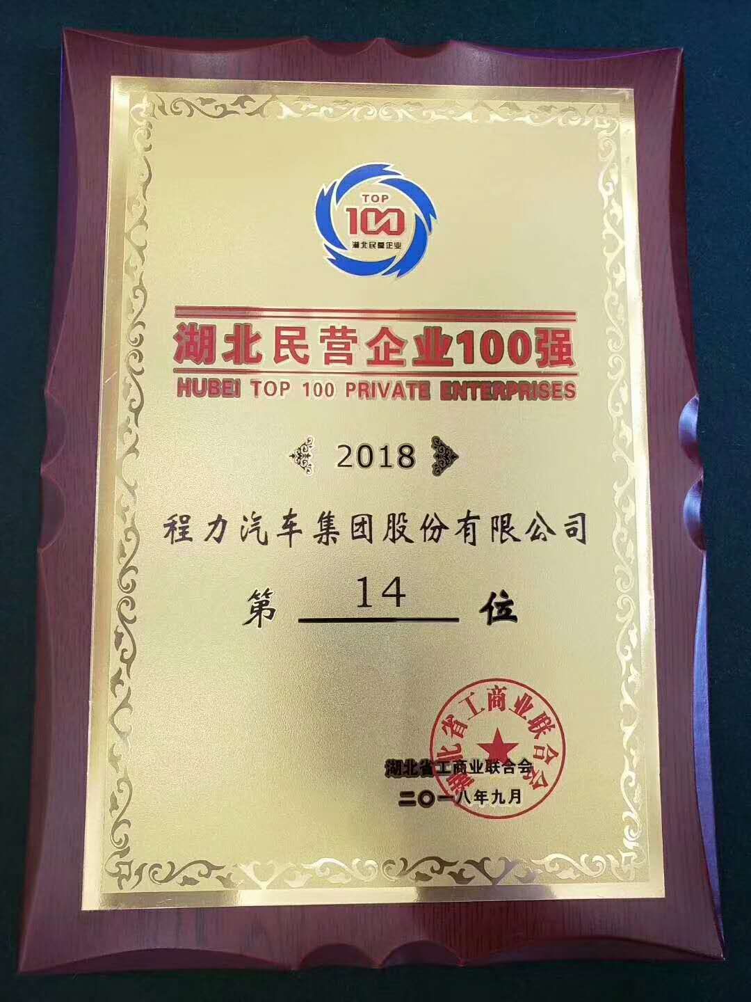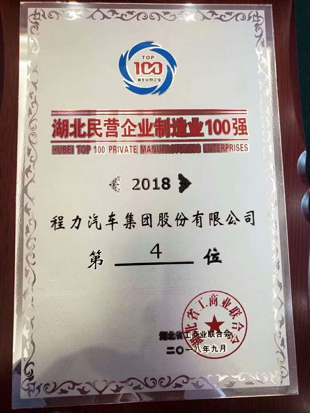 賀湖北程力汽車集團榮譽排名湖北民營制造業第四名