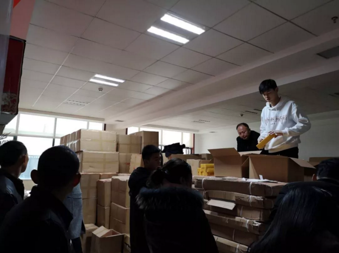 迎新賀年的精美禮品堆碼如山,分發的小伙子感覺到恐高癥了。 一車車迎新賀歲的三大件禮品(掛歷、臺歷、對聯)及專汽科普少兒畫冊源源不斷的派送到員工和幼兒園小朋友的手中。 “年年歲歲花相似,歲歲年年禮品新”,今年的迎新賀禮主打專汽科普元素。更重要的是,程力公司將這些印刷業務悉數交給貧困縣少數民族異遷安置點貧困戶去作業生產,與扶貧企業巴楚風印務公司對接,以產業扶貧“訂單扶貧”的方式,解決貧困戶穩定就業,勇擔了社會責任,實現了扶貧公益的雙重效益,受到社會各界的各級政府黨委的肯定和表彰。 |