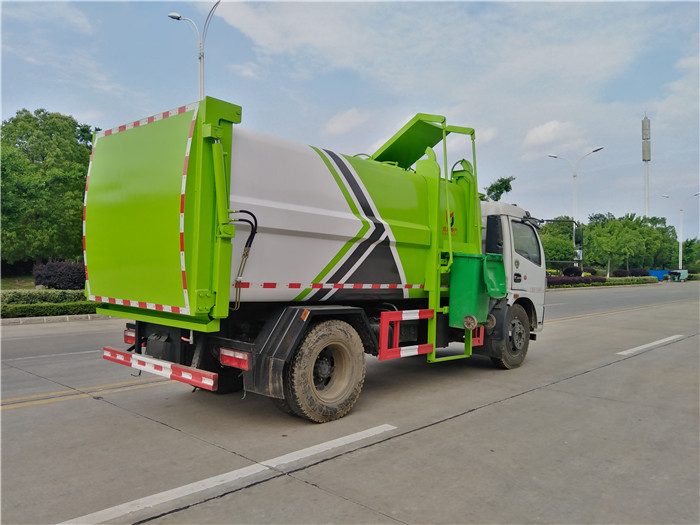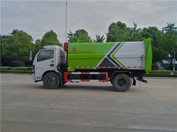 國六東風(fēng)大多利卡側(cè)裝壓縮掛桶自裝卸式垃圾車箱體為圓弧形新型加強(qiáng)型,箱體容積7.5 立方,壓縮方式為液壓底推推板,提升機(jī)為機(jī)拉桿式,后門液壓反向鎖死,箱體材料為Q345B錳鋼制作,材料厚度為4個(gè)厚,液壓閥為中梅或長源牌,液壓缸為海普瑞斯,齒輪泵為合肥長源牌,箱體尾部加裝污水槽,可有效防止垃圾二次污染。