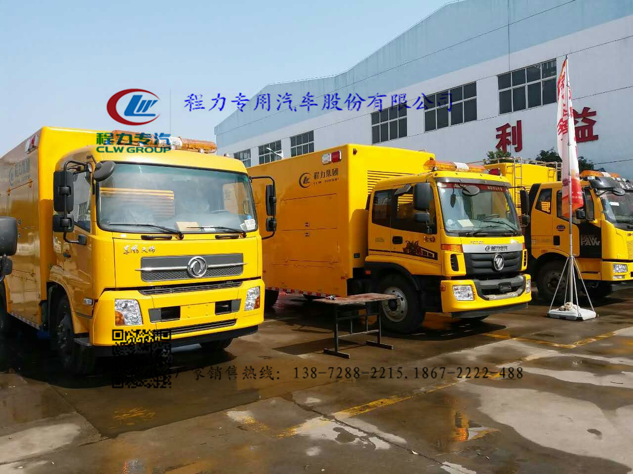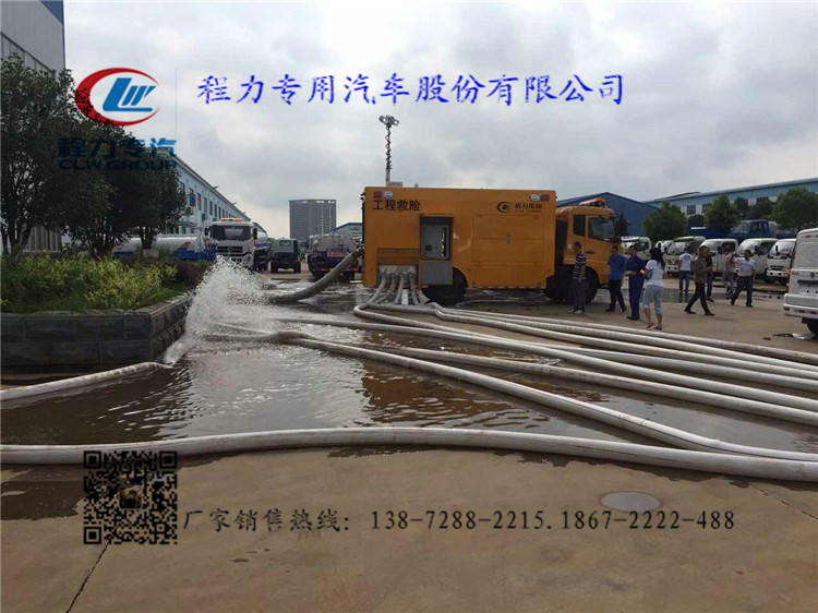 選裝配置:選裝行李架、爬梯、車頂工作臺(tái);選裝不同形狀、結(jié)構(gòu)的警示燈;選裝中隔斷(可選擇開門)、車身兩側(cè)可選開上掀門、盲窗、側(cè)開門;花紋鋁板;加裝設(shè)備工具柜、配電箱、發(fā)電機(jī)組、水泵、電焊機(jī)、空壓機(jī)等線路安裝外接電源系統(tǒng)、(室內(nèi)燈光照明、探照燈、高桿照明燈等);繞線盤,還可根據(jù)用戶不同需求加裝不同的維修搶險(xiǎn)設(shè)備、車身制作專用圖案或標(biāo)識(shí)。 東風(fēng)天錦工程救險(xiǎn)車、抗洪救災(zāi)車,搶險(xiǎn)車,抗洪吸水車,抗旱車 程力專用汽車股份有限公司最新研發(fā)的搶險(xiǎn)救援車,工程搶險(xiǎn)車,抗洪吸水車,應(yīng)急電源泵車,移動(dòng)水泵車。該車排水量1000立方/小時(shí),操作簡(jiǎn)單,機(jī)動(dòng)性強(qiáng),真正實(shí)現(xiàn)了移動(dòng)水泵的概念,設(shè)備可滿足緊急排水搶險(xiǎn)的需要,并具備移動(dòng)電源功能。 設(shè)備采用東風(fēng)底盤改裝,總質(zhì)量12.5噸,發(fā)動(dòng)機(jī)功率127kw,排放標(biāo)準(zhǔn)達(dá)到國(guó)五標(biāo)準(zhǔn),3.8米軸距,帶空調(diào),方向助力,最大涉水深度600mm。 發(fā)電機(jī)備用功率120kw,額定輸出功率110kw,額定頻率50HZ,額電壓230/240V,康明斯發(fā)動(dòng)機(jī)。電子調(diào)速,啟動(dòng)電瓶,電瓶總閘。 車廂內(nèi)專設(shè)接地樁頭,連接方便,在機(jī)組工作時(shí),連接接地線,保護(hù)作業(yè)安全。機(jī)電設(shè)備有嚴(yán)密的防漏電保護(hù)措施。 控制系統(tǒng)采用智能控制,集中控制,中文界面,具有自動(dòng)障礙保護(hù)功能,選用優(yōu)質(zhì)電器元件,性能穩(wěn)定,安全可靠。 該車配備一臺(tái)一體式真空輔助自吸排污泵,流量1000立方/小時(shí),電機(jī)功率55kw,揚(yáng)程12米,吸程8米,安裝在車尾部,方便拆卸水管及出水,該泵無(wú)需灌水,無(wú)需額外增加水環(huán)泵輔助抽真空,性能好,出水快,水泵啟動(dòng)采用軟啟動(dòng)。抽水管為兩個(gè)八寸管,采用美國(guó)進(jìn)口透明水管,質(zhì)量輕,拿取方便,配3.5米長(zhǎng)水管4根。接頭都采用東方式快速接頭,使用方便,密封效果好,每個(gè)進(jìn)水口配置鴨嘴式接頭,實(shí)現(xiàn)低水位抽吸作業(yè)。各進(jìn)水口配90度彎頭。 排水口分為4個(gè)5寸出水口,每個(gè)出水口66米出水軟管,(33米每卷)軟管為快速接頭連接,操作方便,并在接頭出設(shè)有防松保險(xiǎn)裝置,安全可靠。材質(zhì)為雙面PVC,耐磨,耐壓。 發(fā)電機(jī)組:發(fā)動(dòng)機(jī)備用功能120KW額定輸出功率110KW,額定頻率50HZ,額電壓230/400V,康明斯發(fā)動(dòng)機(jī),調(diào)速方式:電子調(diào)速,啟動(dòng)電瓶,電瓶總閘