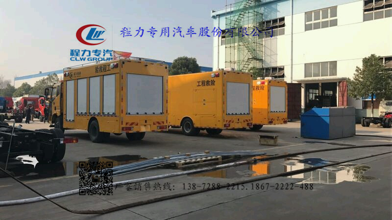 東風(fēng)天錦工程救險(xiǎn)車底盤配置:采用東風(fēng)原廠DFL1160BX1V的底盤,一排半可翻轉(zhuǎn)式駕駛室,帶導(dǎo)流罩,康明斯180馬力國(guó)五排放發(fā)動(dòng)機(jī),原廠空調(diào),原廠ABS,方向助力,6檔變速箱,9.00R-20鋼絲胎,軸距3800mm,整車外形尺寸7550mm*2400mm*3600mm.涉水深度600mm,