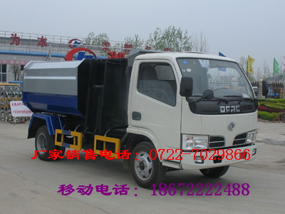 四: 掛桶垃圾車又叫車廂可卸式垃圾車,采用鏈條和液壓油缸聯動裝置,實現對垃圾斗提升和翻轉,將多處垃圾斗內的垃圾自動收入車廂,并到目的地一次性自卸出來。