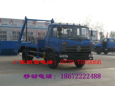 五:《擺臂式垃圾車由底盤,垃圾箱(斗)擺臂減速緩沖油缸等組成,其特點是垃圾箱能與車體分開,實現一車與多個垃圾箱的聯合使用。