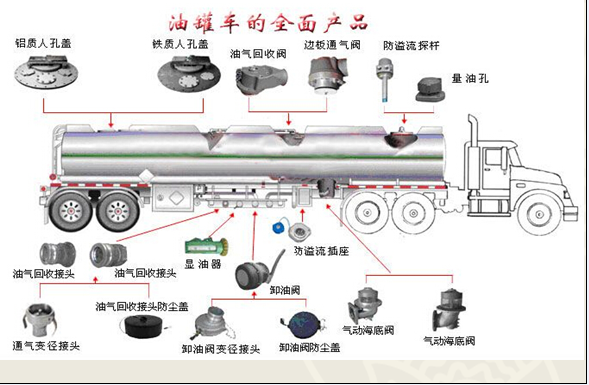 (3)下裝口:下裝口又名卸油閥,安裝于油罐車側下方,用于快速卸油用,避免了油氣擴散。