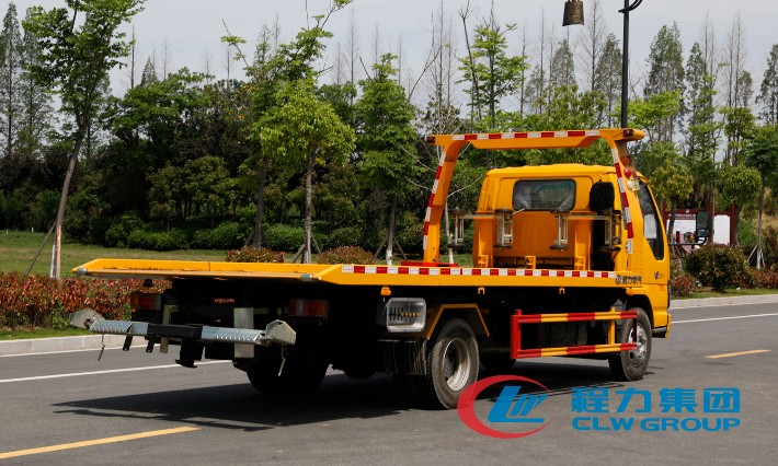 整車出具:底盤合格證、整車合格證、全國統一機動車上戶發票、隨車工具、車輛質保手冊、全國服務站點目錄等。 湖北程力國六五十鈴黃牌一拖二清障車(5.6米板長)程力威牌CLW5070TQZQ6型清障車圖片價格:
