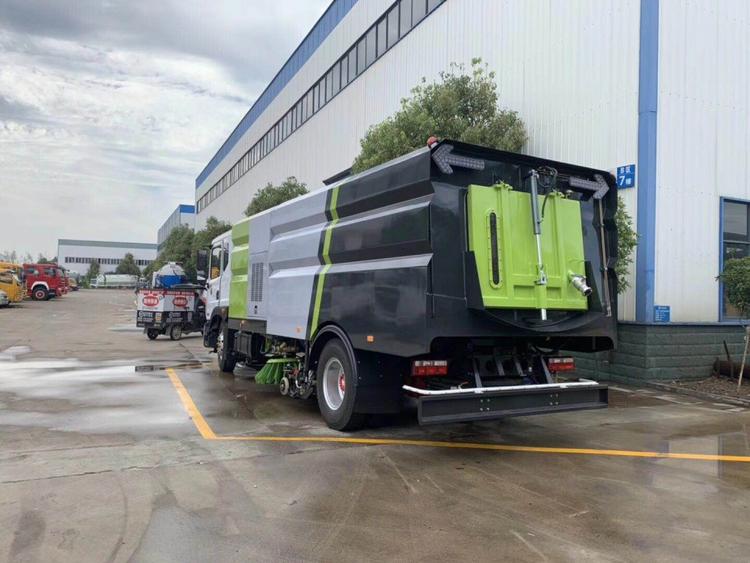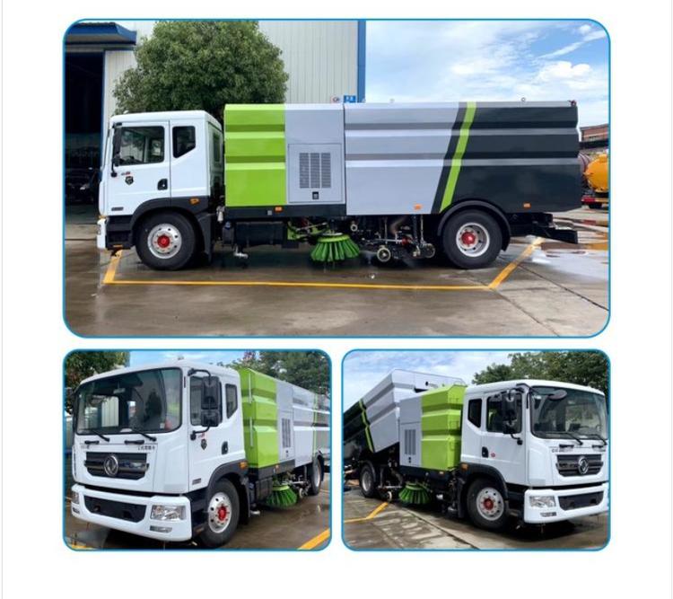 湖北程力東風D9洗掃車(國六) 底盤配置: 采用東風D9系列新款駕駛室,3950mm軸距,搭載國六(國VI)玉柴200馬力柴油發動機/康明斯210匹馬力柴油發動機,6檔變速箱,9T后橋,295真空胎,方向助力、斷氣剎、電動窗、中控鎖、ABS,原裝空調,GB7258新規。 湖北程力東風D9洗掃車(國六)上裝配置: 帶2個中置掃盤;中置超寬吸嘴;雙層吸塵筒; 康明斯170馬力副發動機;臺灣液壓閥;大力馬達;德國高壓水泵 (前沖/側噴/中噴/后噴霧)/側沖洗水槍/垃圾箱自潔裝置); 萬向高壓路沿清洗;威龍低壓泵(前沖),氣動球閥控制; 4mm不銹鋼垃圾箱;不銹鋼水箱;德國控制器;尾部箭頭燈; 機油、垃圾箱、水箱均帶防溢或低位報警裝置;倒車及洗掃狀態室內監視器; 多種語音提示;倒車自動保護、防傾倒垃圾翻車保護、檢修安全保護; 20m高壓沖洗卷盤;刷臂轉動機構使用德國進口高新耐磨工程隔套,免打黃油; 冷彎無縫液壓油管;運動控制器一鍵電腦控制。洗掃寬度3.5m;吸入粒度p110mm。 湖北程力東風D9洗掃車(國六)多方位圖片: