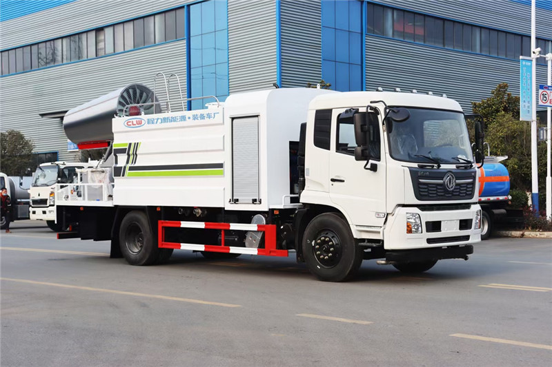 湖北程力國六東風天錦60-100米抑塵車(方罐)程力威牌CLW5181TDYD6型多功能抑塵車廠家配置: 湖北程力國六東風天錦抑塵車底盤配置:底盤采用東風天錦國六底盤,公告型號:CLW5181TDYD6,康明斯6缸ISB210馬力發動機,4700軸距,275真空胎,6檔變速箱,原裝空調,ABS。 湖北程力國六東風天錦抑塵車上裝配置:罐體容積11.3立方,罐體為方形罐,罐體內部做防腐,罐體鋼板采用Q235碳鋼鋼材,整車具備灑水車的一切功能(前沖、后灑、側噴、平臺高炮),氣動球閥控制灑水功能,水位報警器,標配億豐60/90水泵,自流閥及消防接頭各1個、水管2根。后平臺安裝一臺60米霧炮。 湖北程力國六東風天錦抑塵車霧炮參數:CLW-100型60米,副發電機組功率50(Kw),風機功率15(Kw),不銹鋼多級離心泵功率5.5(Kw)。100米無線遙控操作,霧化距離60米(靜風室內距離)實際射程:(霧化射程會受濕度、溫度、風速等各方面天氣因素的影響,另外天氣干燥地區一部分在空中被蒸發掉)。 | 湖北程力國六東風天錦60-100米抑塵車(方罐)程力威牌CLW5181TDYD6型多功能抑塵車圖片價格: